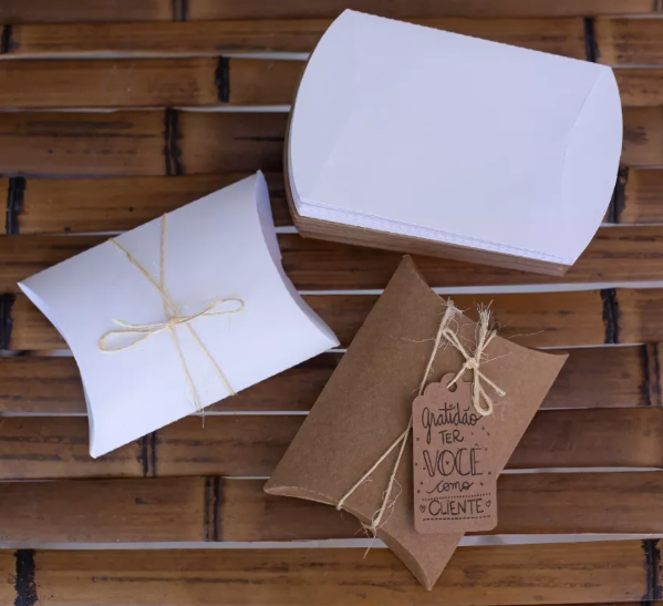 Caixa Travesseiro Bijuteria Kraft Presente Personalizada 8x6 C/2500 Un (pequena)